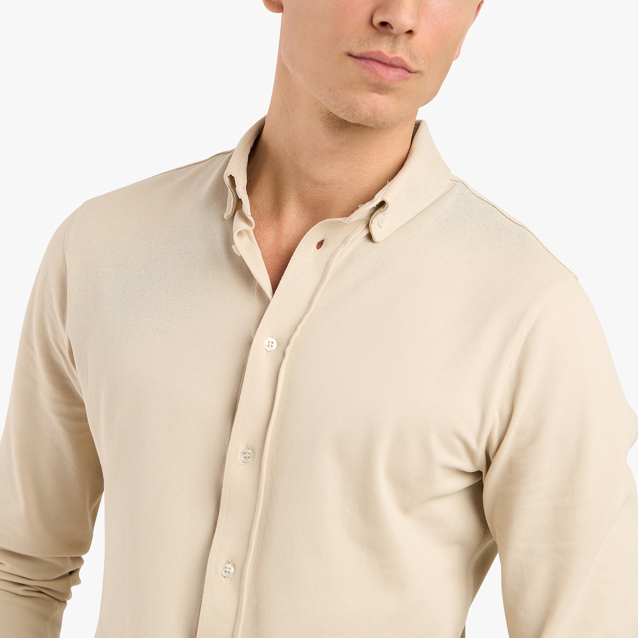 BUTTON DOWN PIQUE SHIRT - BEIGE